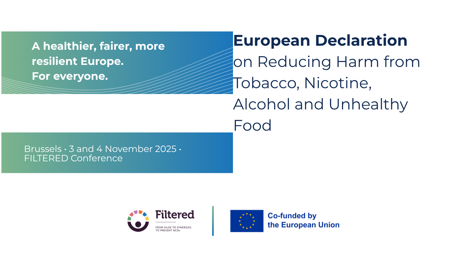 On 3–4 November 2025, the FILTERED Project held its Final Conference in Brussels, marking the launch of the European Declaration on Reducing Harm from Tobacco, Nicotine, Alcohol and Unhealthy Food. The declaration was endorsed by the European Heart Network (EHN) alongside the FILTERED project and associate partners:
