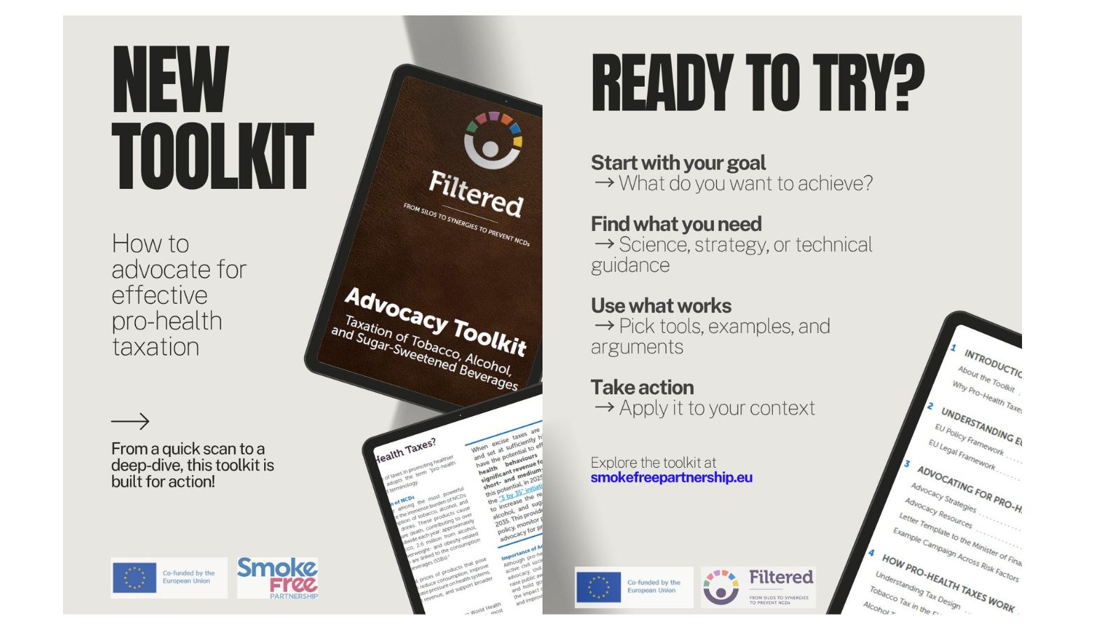 The toolkit has been developed as part of the FILTERED project (From Silos to Synergies to Prevent NCDs), co-funded by the European Union. It reflects a collaborative effort across partners in Europe to strengthen advocacy, promote health, and accelerate action on key NCD risk factors.